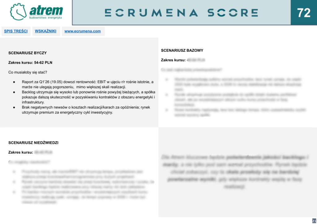 Atrem to jedna z 60 spółek przeanalizowanych w naszym kwartalnym raporcie Stock Compass Q1 2026, kompleksowym przeglądzie polskiego i amerykańskiego rynku akcji. Pełna analiza wraz ze scenariuszami wyceny dostępna tutaj: ecrumena.com/documents/stock-compass-q1-2026