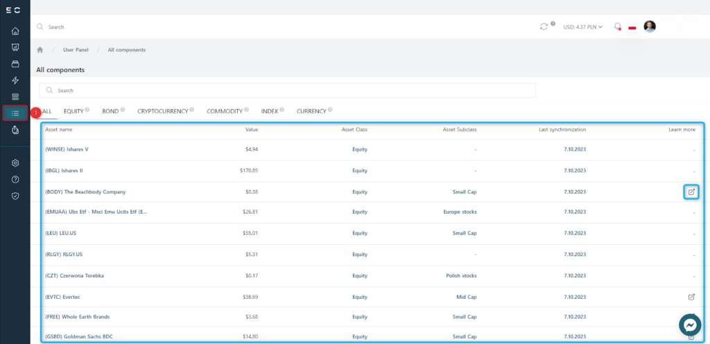 - Wejdź w zakładkę “Wszystkie składniki” po lewej stronie panelu, jeżeli chcesz zobaczyć podsumowanie swoich walorów.