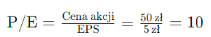 Krok 2: Obliczanie wskaźnika P/E Obecna cena akcji ABC wynosi 50 zł, więc wskaźnik P/E wynosi: